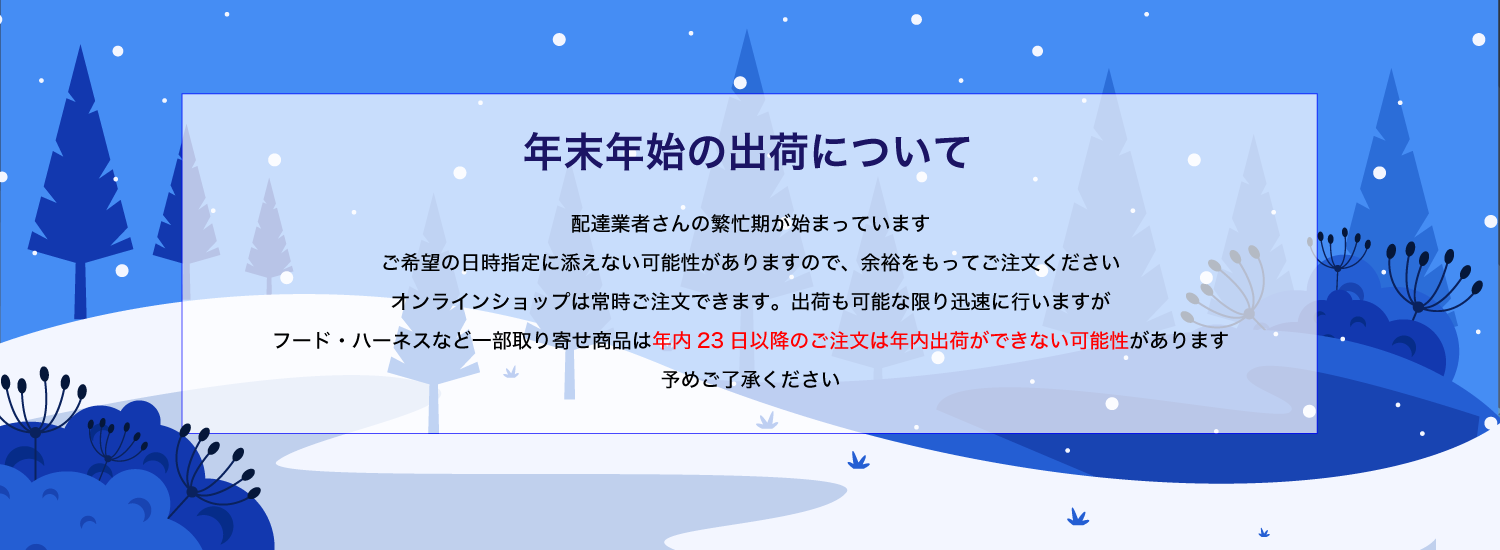 ¹õ¿§¡Ä´ðËÜŪ¤Ë½Ð²Ù¤ò¤ªµÙ¤ß¤·¤Æ¤¤¤Þ¤¹¡£ ¤ªµÙ¤ßÍâÆü¤òÇÛã´õ˾Æü¤Ë¤·¤¿¾ì¹ç¡¢¤´´õ˾¤Ëꤍ¤Ê¤¤¾ì¹ç¤¬¤¢¤ê¤Þ¤¹¡£¤´Î»¾µ¤¯¤À¤µ¤¤¡£ ÀÄ¿§¡Ä¥á¡¼¥«¡¼¤¬Ç¯Ëöǯ»Ï¤Î¤ªµÙ¤ß¤ËÆþ¤ê¤Þ¤¹¡£°ìÉô¤Î¼è¤ê´ó¤»¾¦ÉʤϽв٤¬¤Ç¤­¤Þ¤»¤ó¡£ÆÃ¤Ë¥É¥Ã¥°¥Õ¡¼¥É¤Ï¤ªÁá¤á¤Î¤´Ãíʸ¤ò¤ª´ê¤¤¤·¤Þ¤¹